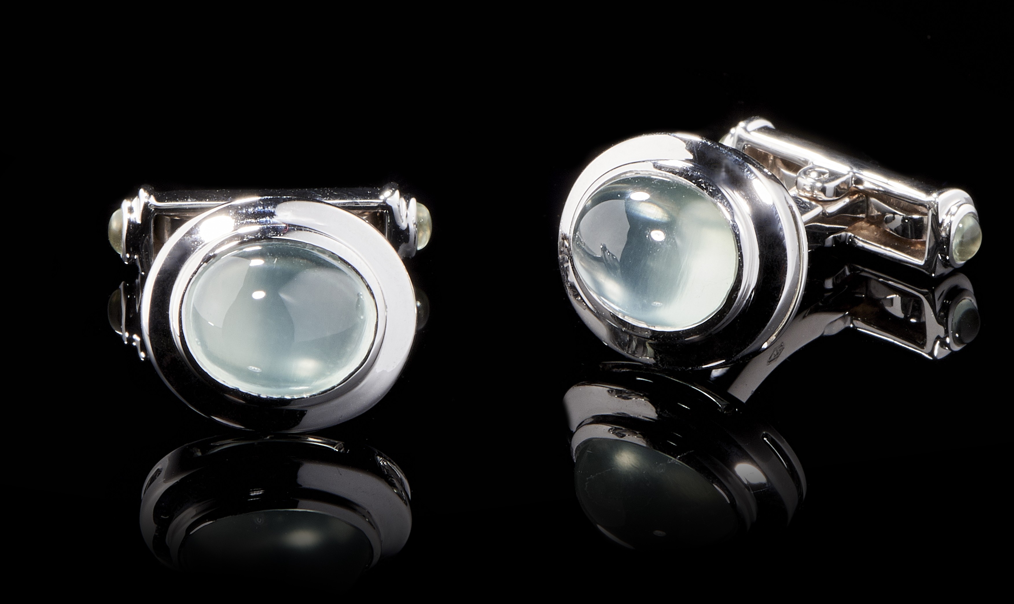 Cufflinks set with green cabochon stones 750 gray gold, gross weight 11 g