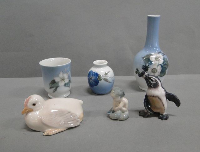 Dahl Jensen figurin, pingvin 2:a sortering H7cm samt parti Kunglig Dansk föremål bl.a