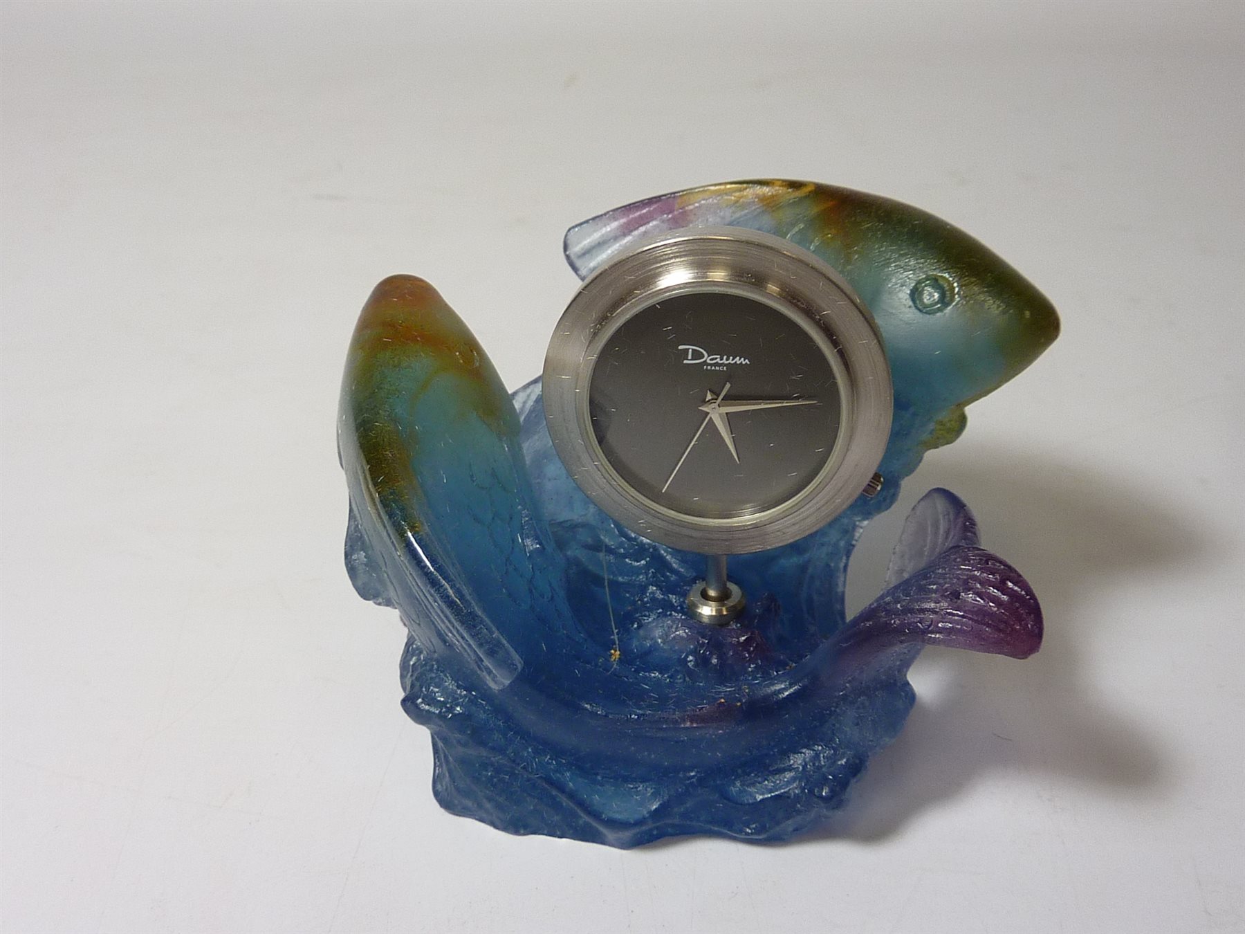 Daum France for Singapore Airlines Priority Passenger Service clock mounted on pate de verre moulded carp base H5.5cm (boxed)