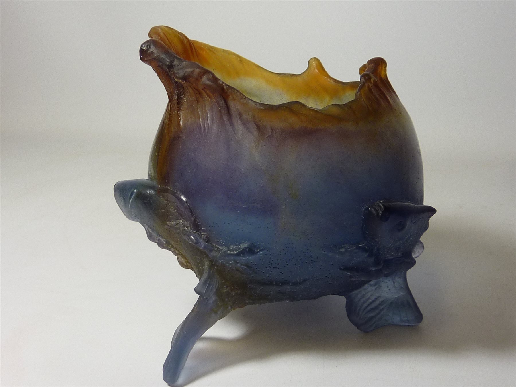 Daum France for Singapore Airlines Priority Passenger Service pate de verre glass bowl moulded with carp