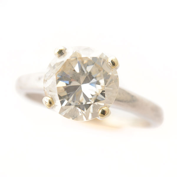 Featuring one round brilliant-cut diamond weighing approximately 2.30 cts., set in a solitaire platinum mounting.