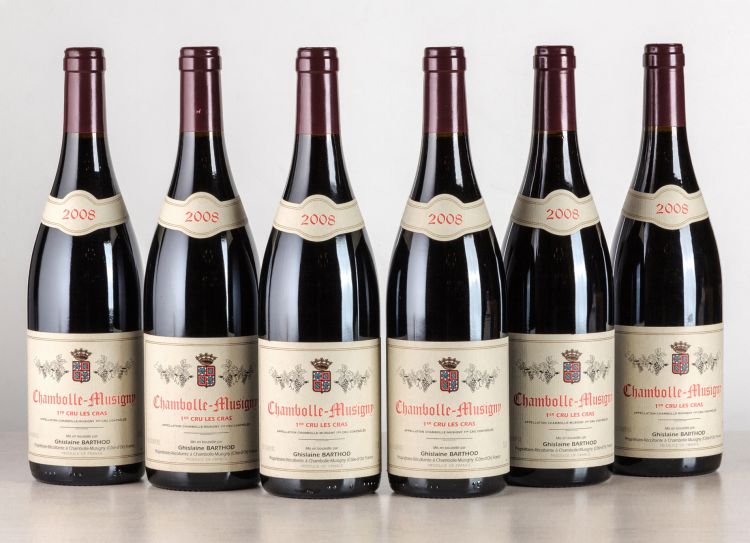 Chambolle-Musigny 1er Cru Les Cras, 2008 6 (1 x 6) 750ml Domaine Ghislaine Barthod is one of the most prominent producers in Chambolle-Musigny and is well-known for its intense, age-worthy Pinot Noirs. First established in the late 1920s as Barthod-N