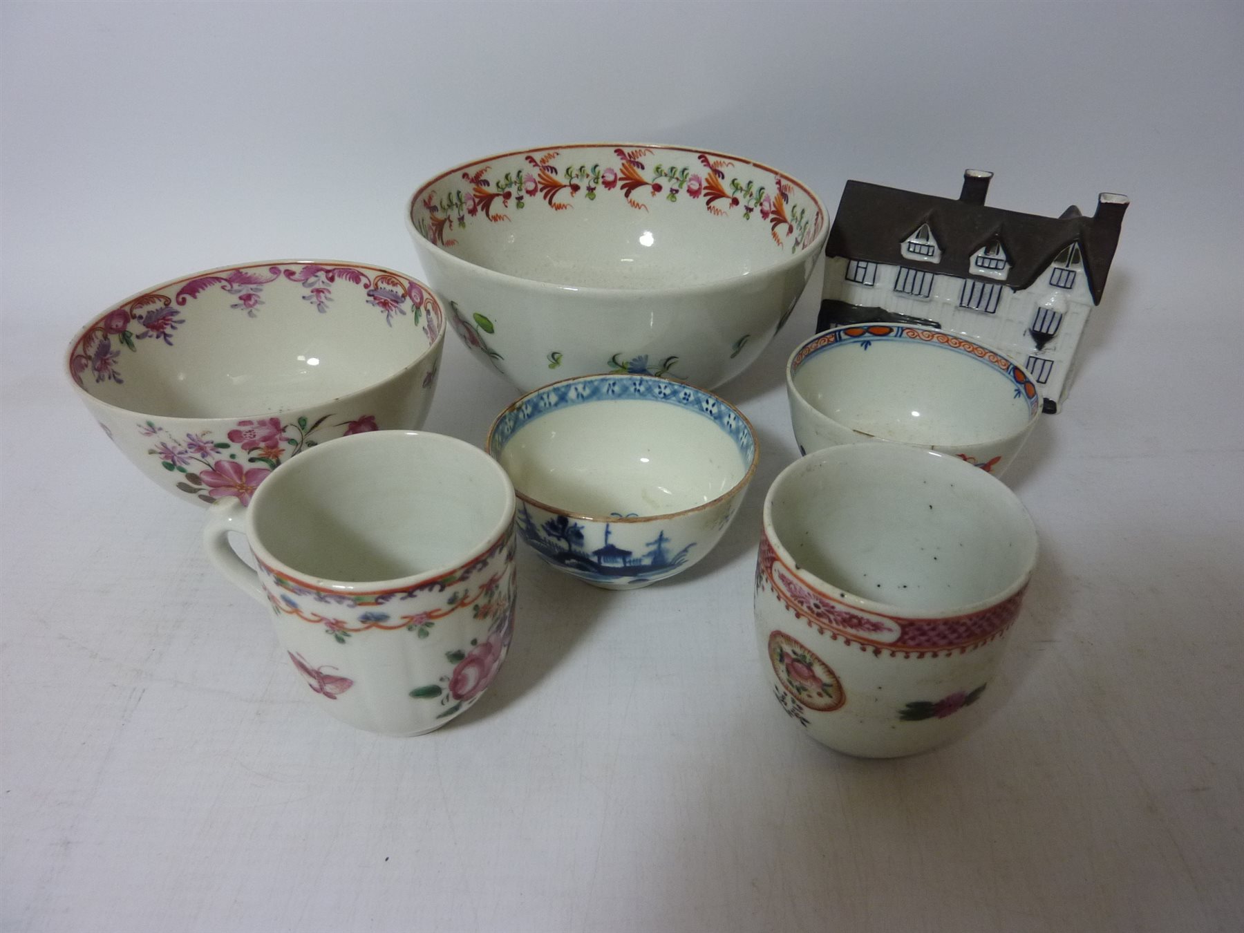 Early 19th century New Hall slop bowl, other 18th/19th century tea bowls