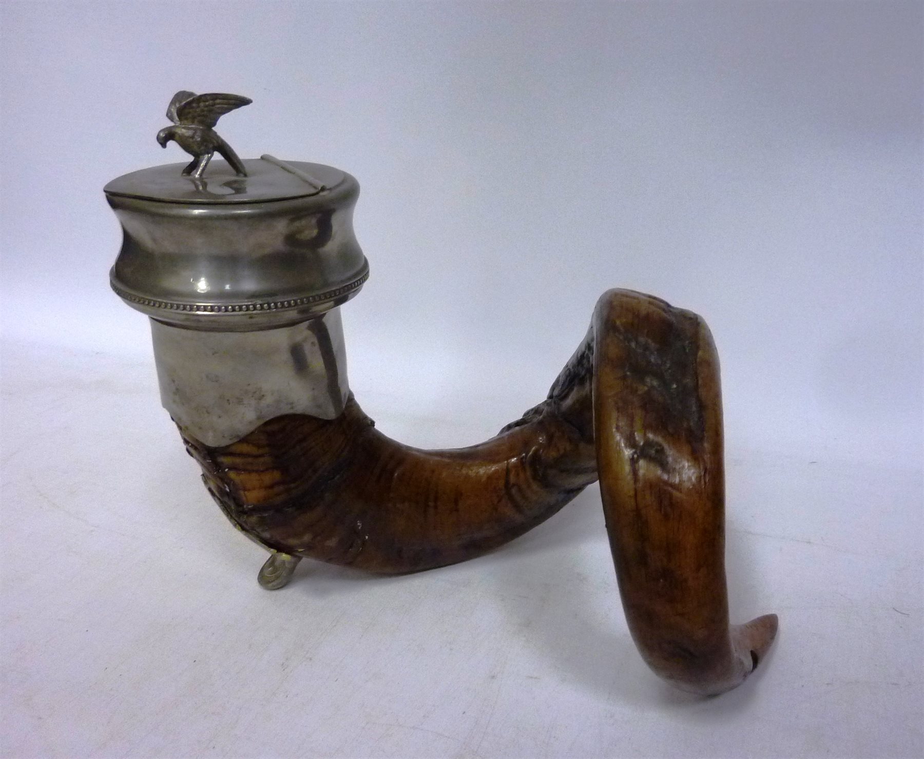 Early 20th century Derbyshire ram's horn snuff mull with pewter mounts
