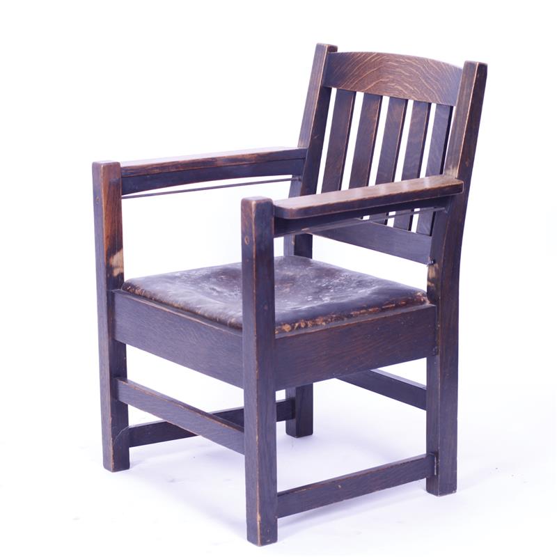 Manner of Gustav Stickley. Unattached leather seat cushion.