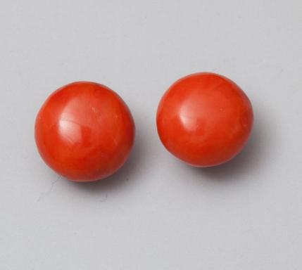 Earrings adorned each with a natural coral button from the 1930s, stem