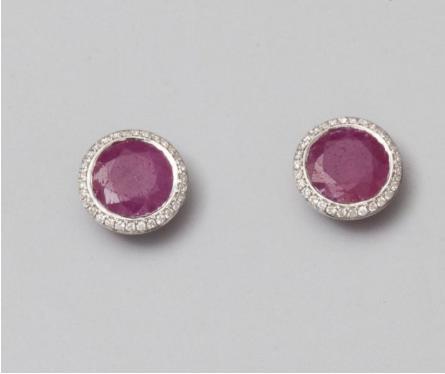 Earrings in white gold, 750 MM, each adorned with a ruby ring, total 2.30 carats and diamonds around, weight: 3,5gr. gross