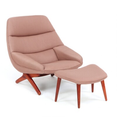 Easy chair with matching ottoman of stained oak