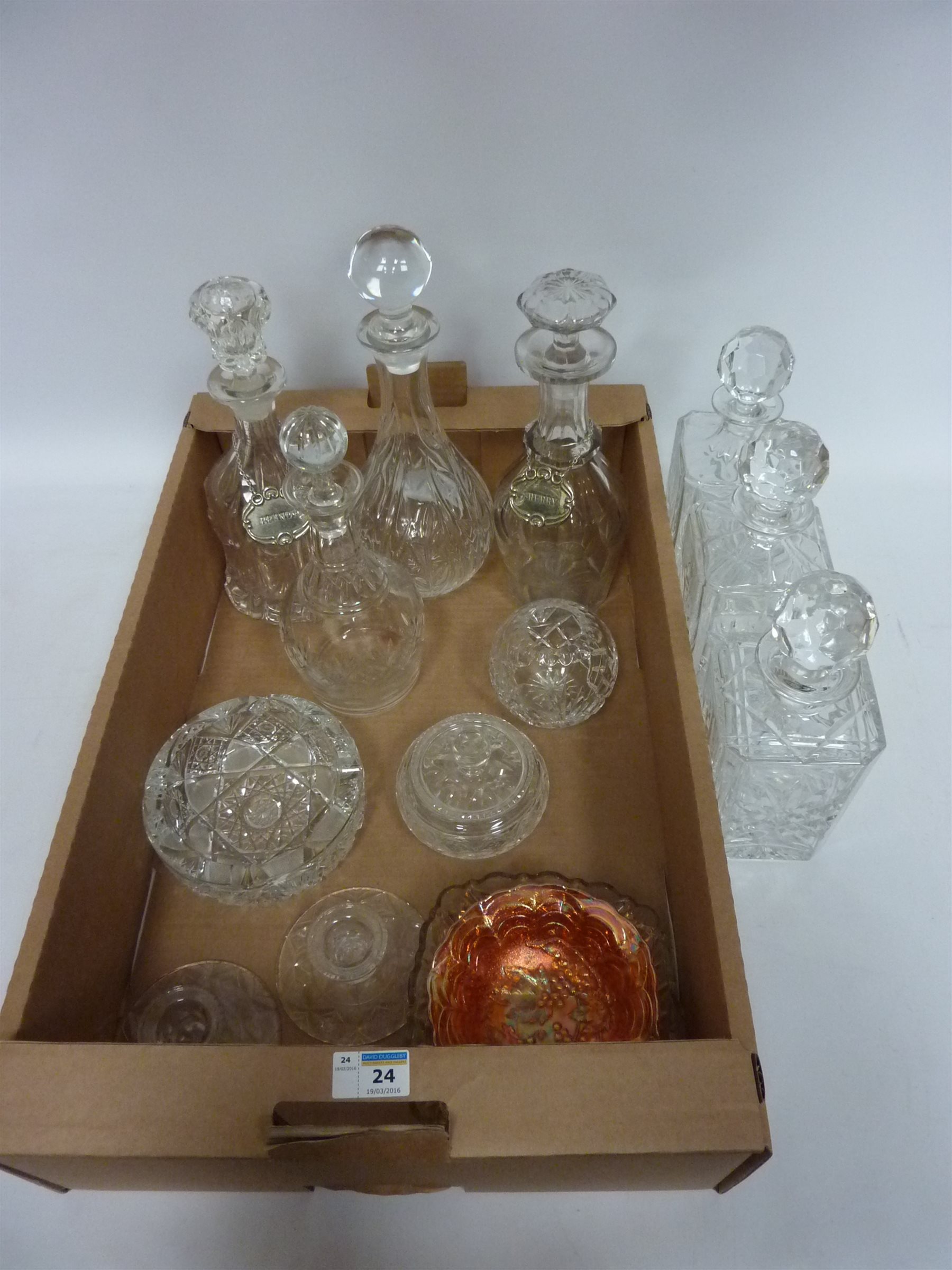Edwardian and later cut glass decanters, other crystal and glassware in one box