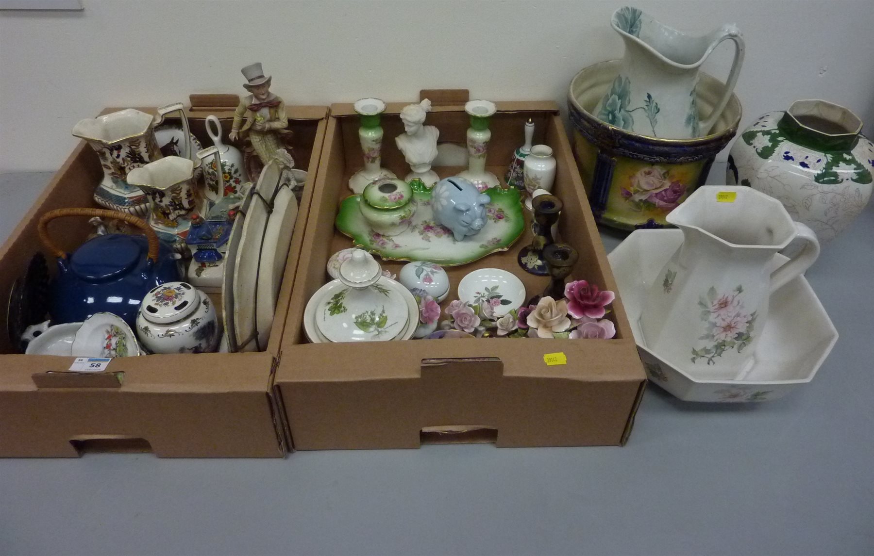 Edwardian jardiniere, washbowl and jug, Victorian and later ceramics in two boxes