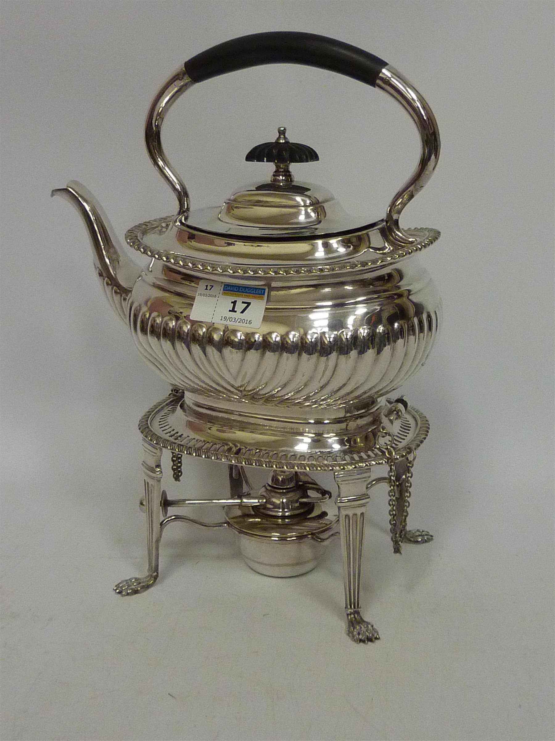 Edwardian silver-plated tea kettle on stand
