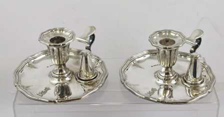 A PAIR OF SILVER PLATED CHAMBER STICKS