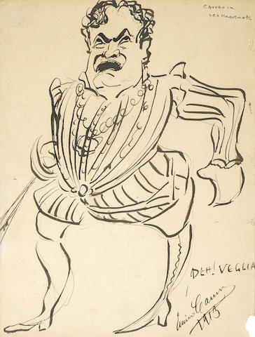 "Enrico Caruso 1913" lower right and additionally inscribed "Deh! Veglia" right edge ragged and lower right corner with a small chip. Matted and framed.