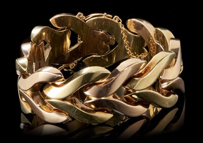 Fancy mesh bracelet two golds Rose Gold and 585, L 19 cm, 48 g