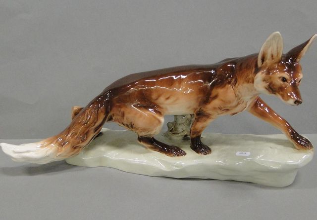 Figurin, räv sannolikt Royal Dux, H29cm L55cm
