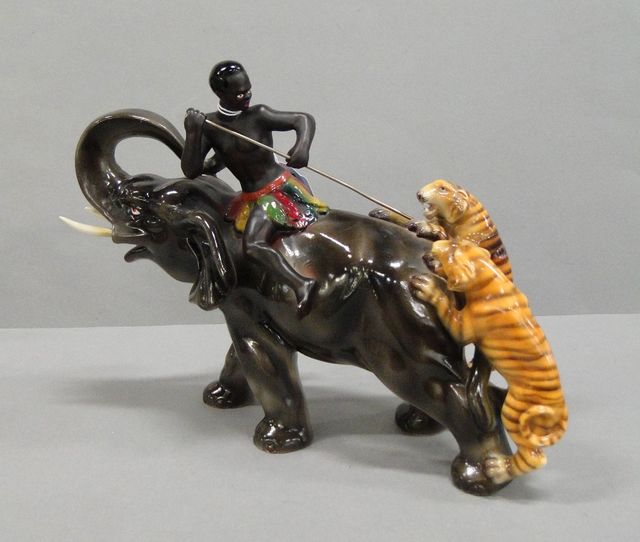 Figurine in the form of elephant and the attacking warrior tigers, 1950s H23cm, insignificant notch