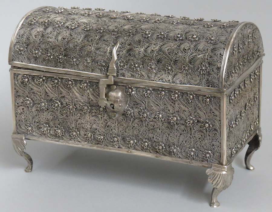 FINE SPANISH COLONIAL SILVER FILAGREE COFFER