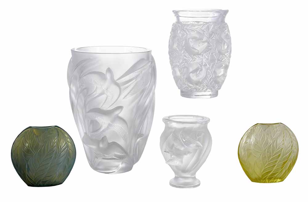 Five Lalique Art Glass Vases