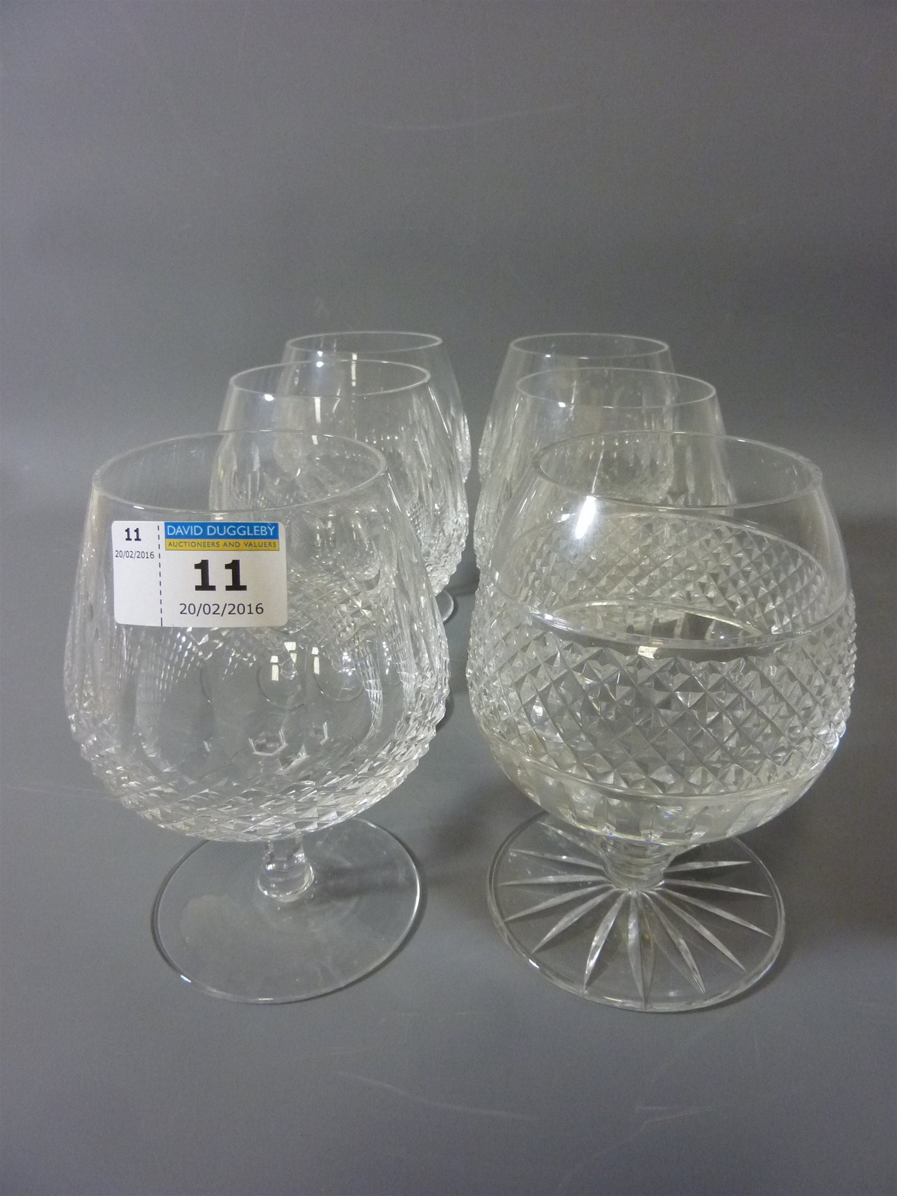 Five Waterford 'Colleen' cut crystal brandy glasses and a similar quality brandy glass