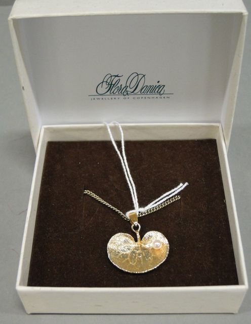 Flora Danica, collier samt hänge med pärla, förgyllt silver, L49cm, medföljande etui