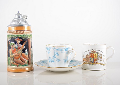Foley china blue and white part tea set 10047, Crown Staffordshire part tea set, other teaware, commemorative mugs, (3 boxes).