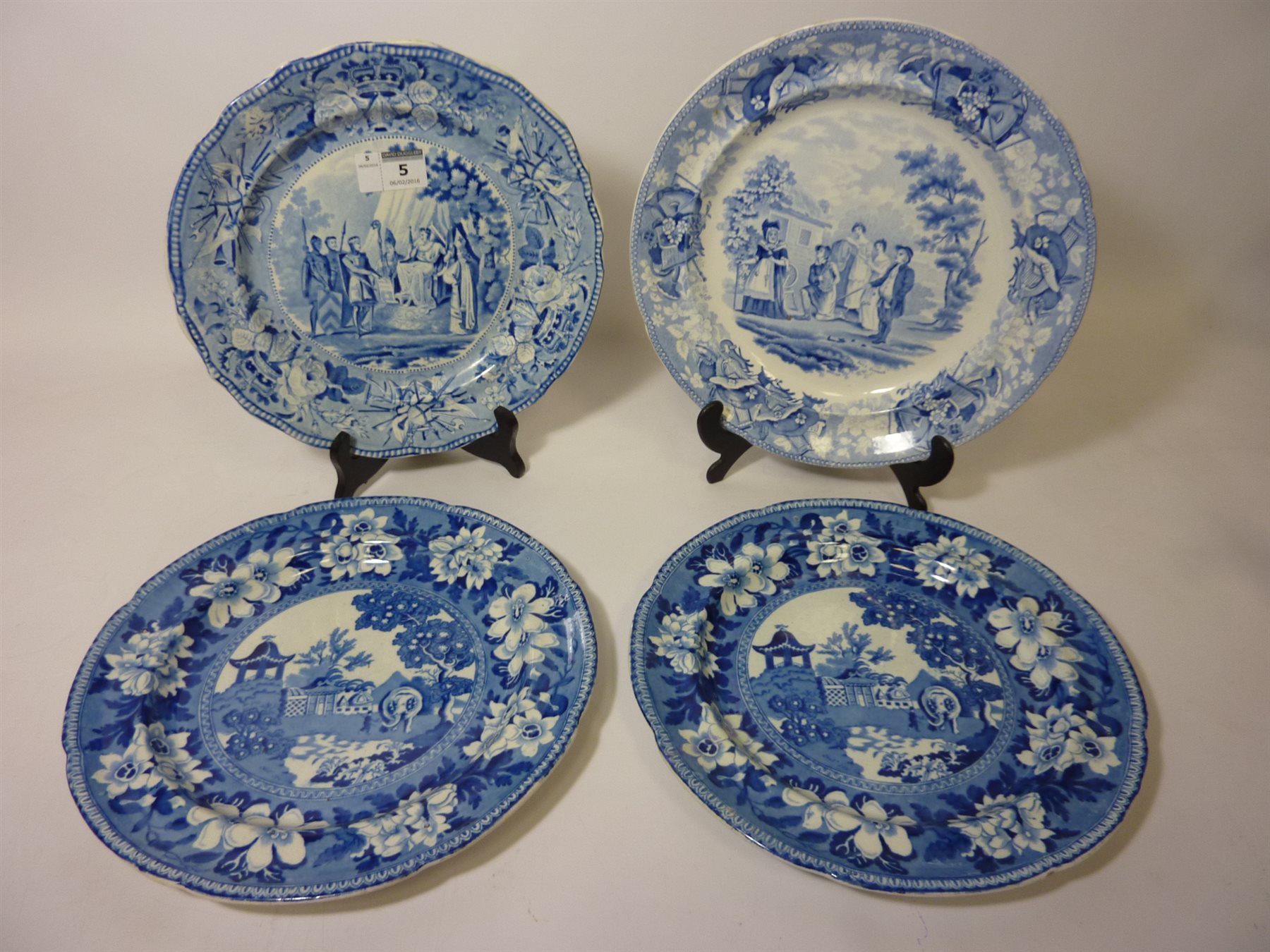 Four 19th Century blue and white plates