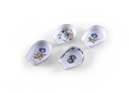Two piece with flower painting, one with Kakiemon décor, a black dragon. Blue swords Meissen, 20th century. L 8,5 cm