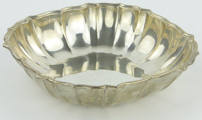 An American sterling silver fruit bowl, with shaped edge by Frank Smith, 18 oz, 26cm across.