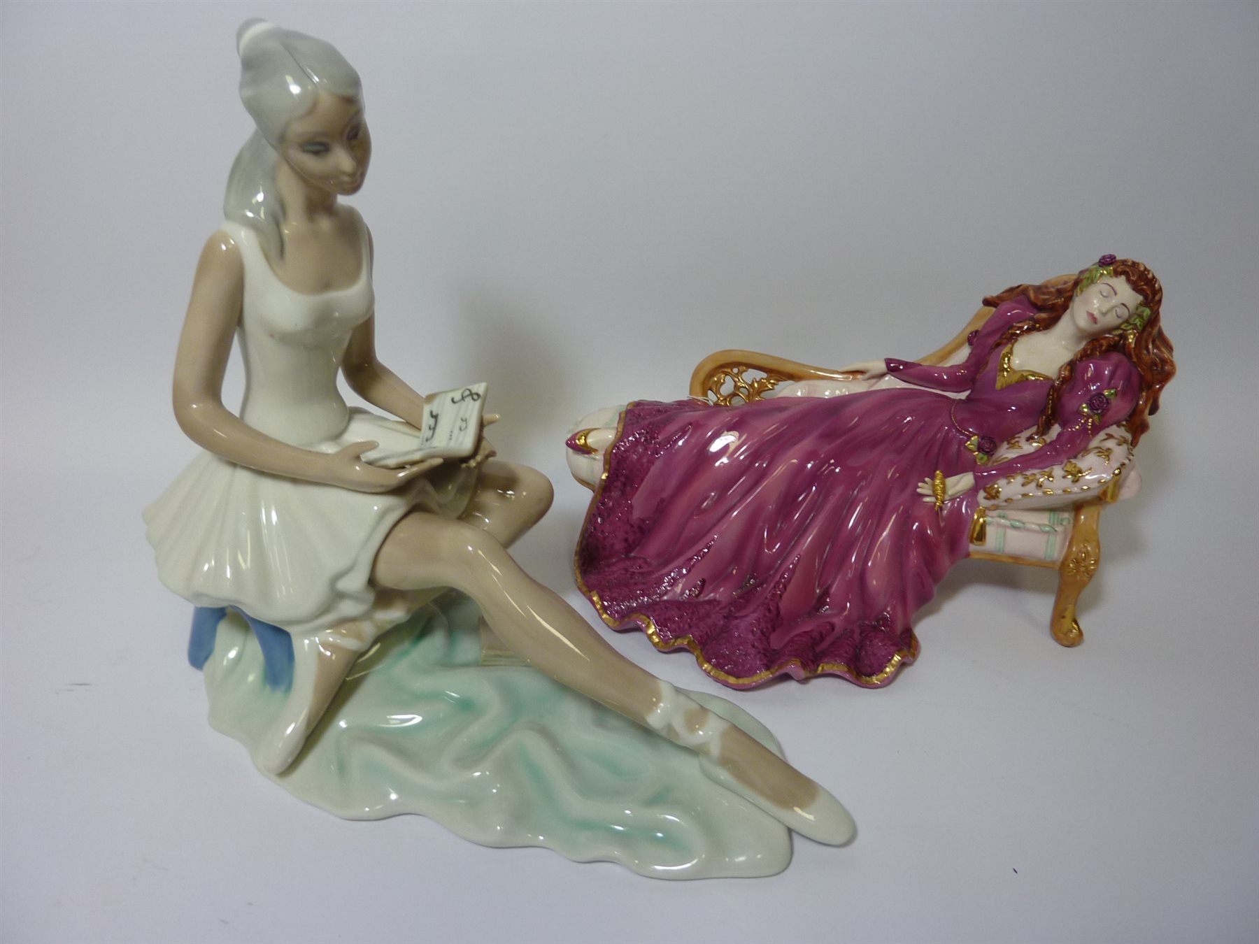 Franklin Mint 'Sleeping Beauty' figure and a Tengra Lladro style ballerina (2)