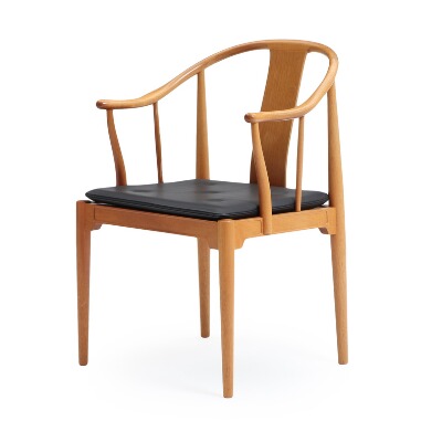 A mahogany armchair, loose cushion with black leather. Model 4283