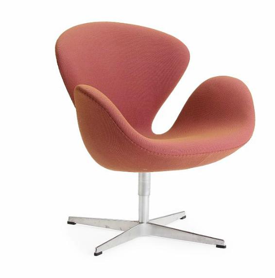 Lounge chair upholstered with rose coloured wool, on aluminum star base