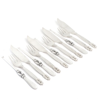 Sterling silver fish cutlery. Weight app. 558 gr. (12)