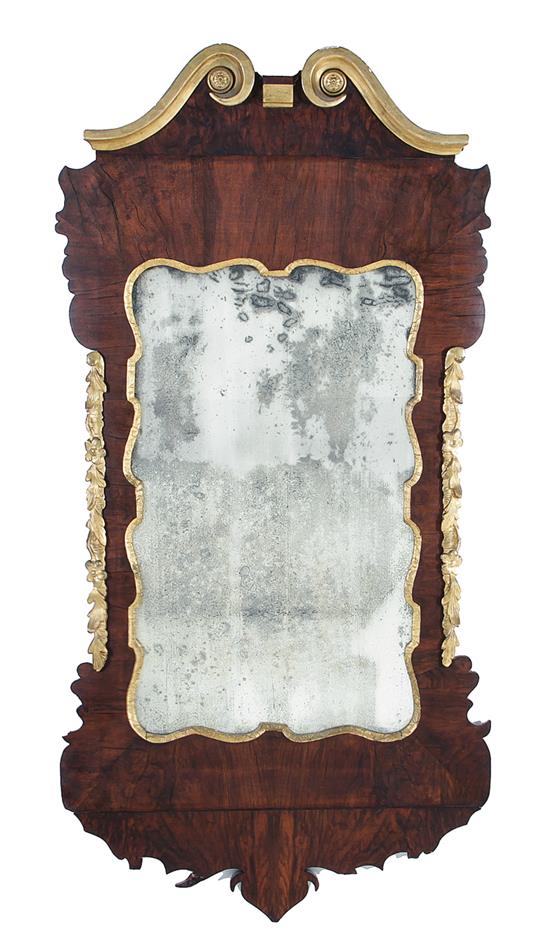 George II style parcel-gilt walnut mirror early 19th century, H56" W28"