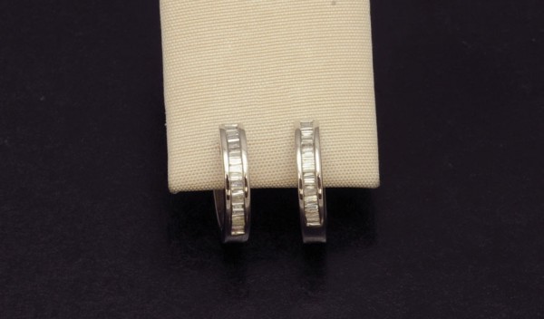 White gold earrings 18 K with calibrated diamonds. Total diamond weight: 0.42 cts.