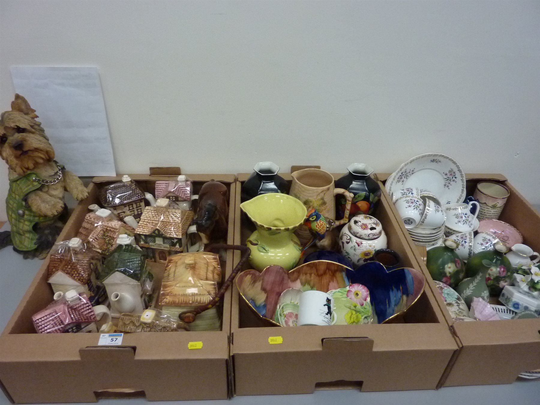 Grafton tea set, novelty teapots, Wedgwood Jasperware, large Yorkshire Terrier sculpture and other decorative ceramics in three