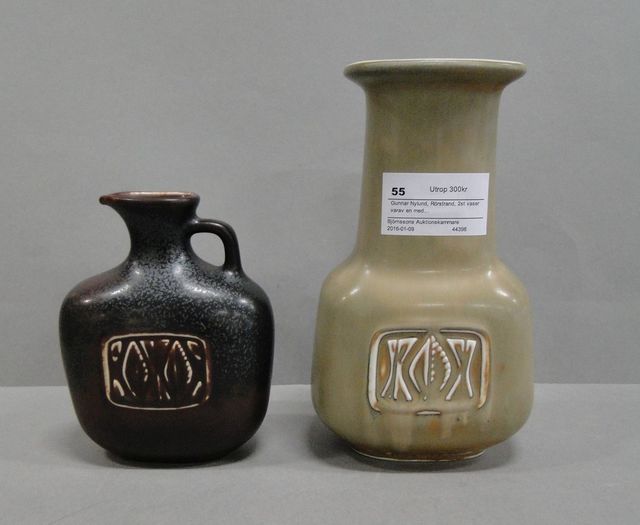 Rörstrand, 2st vaser varav en med handtag, stengods, 1:a sortering