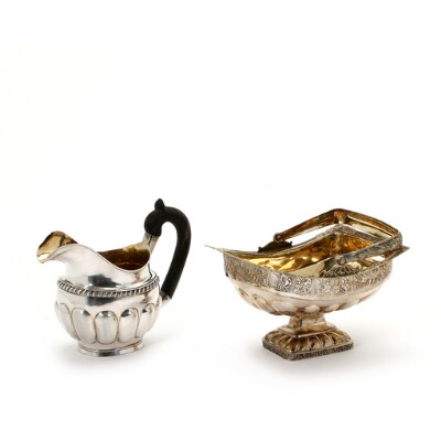 A Russian late Empire silver creamer and A Russian late Empire silver-gilt bowl