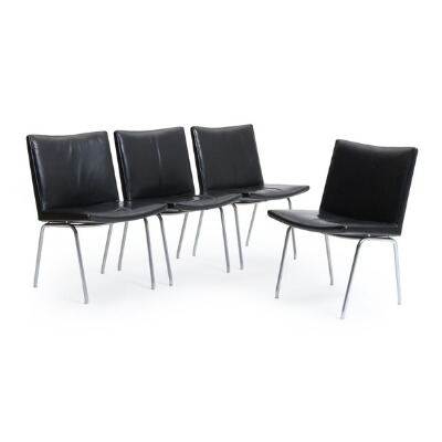 A set of four airport chairs upholstered with black patinated leather