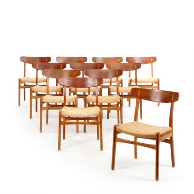 CH 23 ". Set of 12 dining chairs with oak frame and teak back