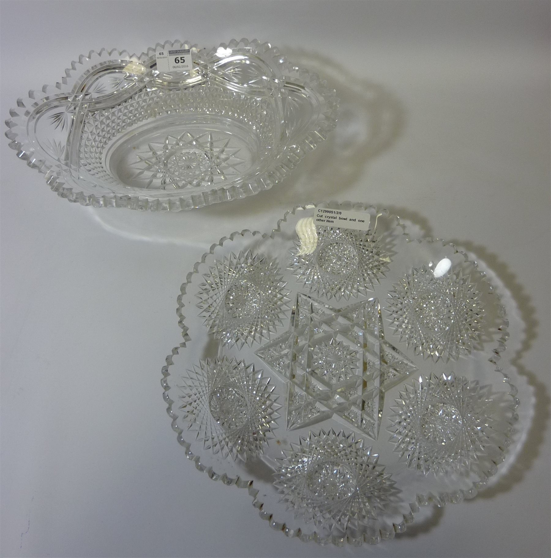 Heavy cut crystal bowl L33cm and a cut crystal plate