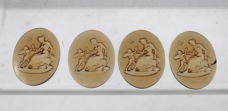 A COLLECTION OF FOUR CZECHOSLOVAKIAN PLAQUES with amber glass intaglio decoration and butterfly signature