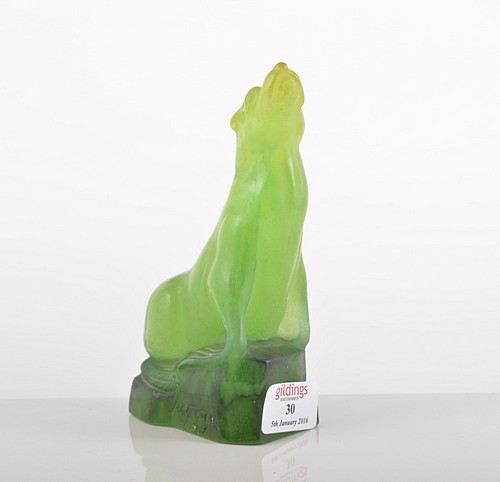 in green glass, signed in the cast 'A. Walter, Nancy', 16cm high (polished base)