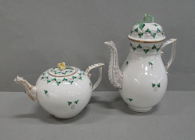 Herend, kaffekanna H26cm samt tekanna H14,5cm, båda med blomnagg