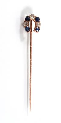 Gold 580, Altschliffbrillanten zus. ca. 0,60 ct, Saphire, österr. Amtspunze 1872-1922, 3,3 g