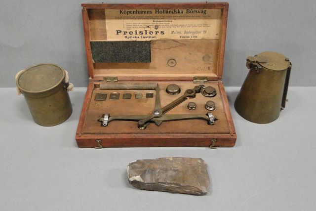 Holländska börsvåg Köpenhamn, vågdelar samt stenåldersxya L11,5cm, avslag