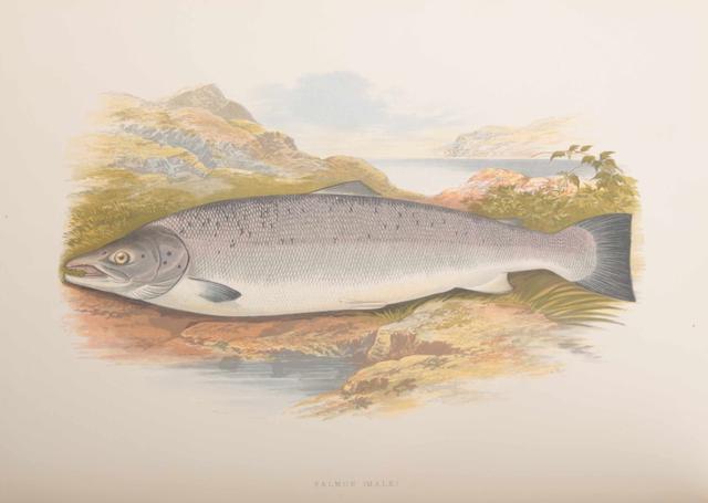 British Fresh-Water Fishes, 2 vol., 41 chromolithographed plates, ownership inscription 'E. J. Water' to endpaper, both volumes splitting to rear end paper, publisher's decorative cloth, g.e., A VERY CLEAN COPY [Nissen ZBI 2009], folio, William Macke