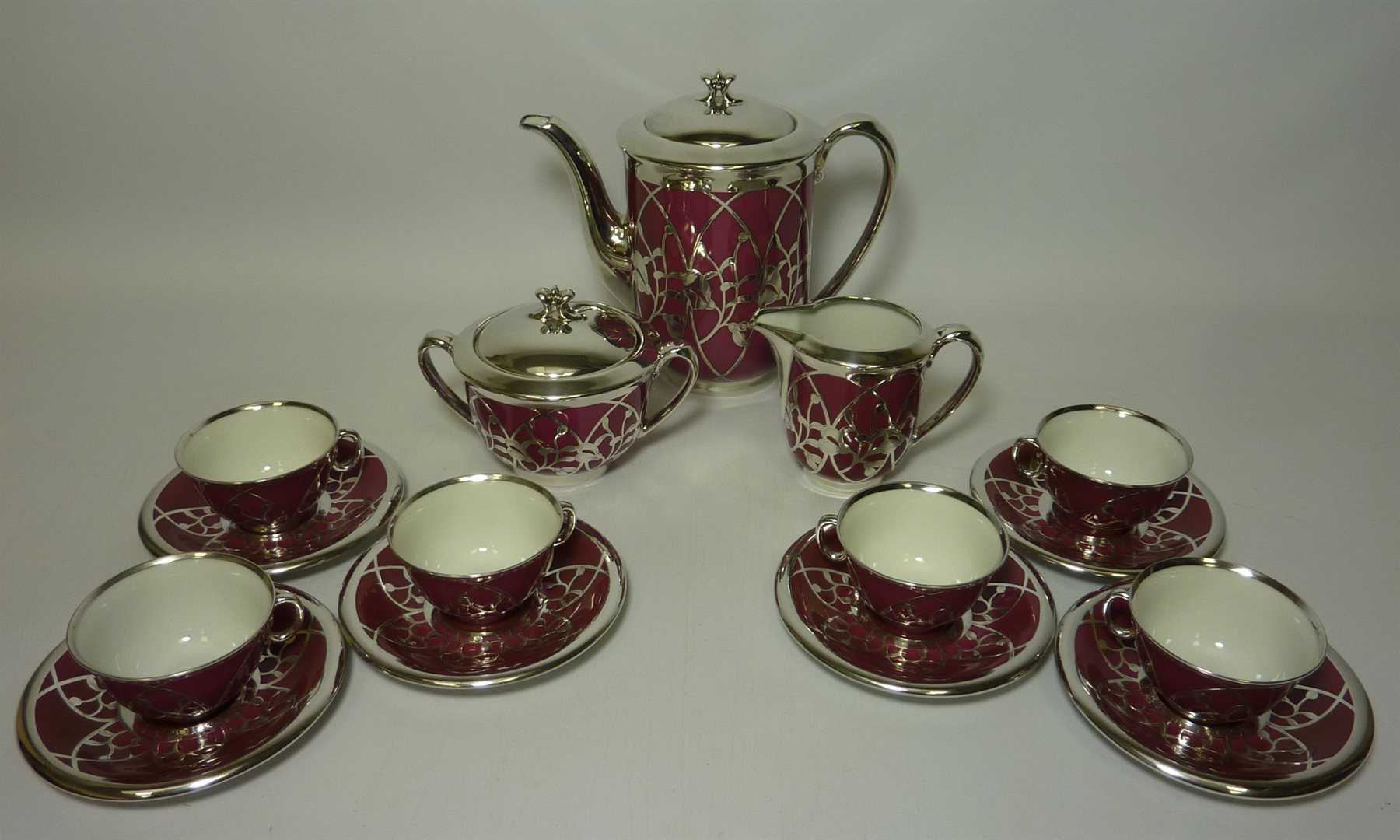 Hutschenreuther Hohenberg German porcelain coffee service overlaid with silver stamped 'Spahr 1000' - 6 place settings