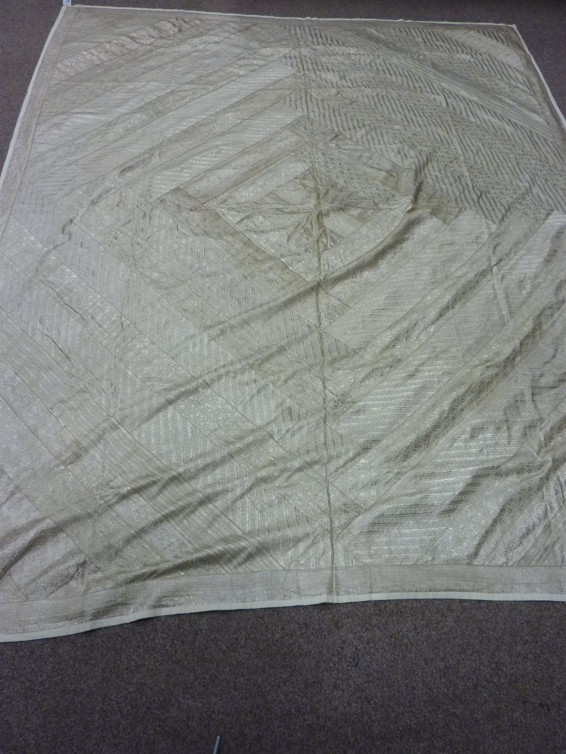 Indian embroidered silk bedspread made from sari edgings (linen backed)