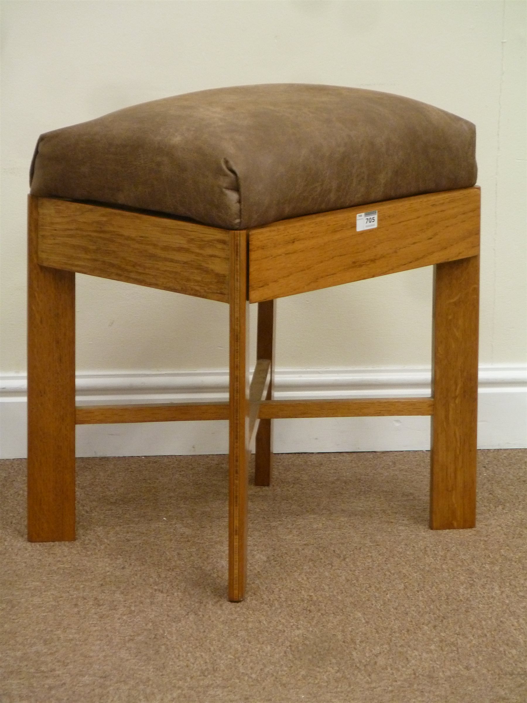 Inlaid light oak stool with upholstered leather seat, fitted with single drawer