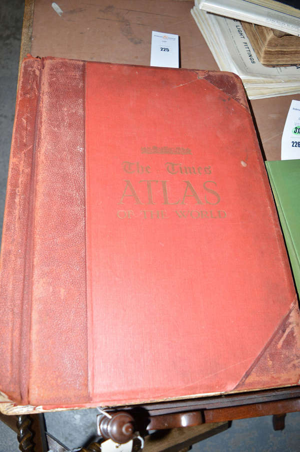A Times Survey Atlas of the World, published by J.G. Bartholomew, 1920, with leather bindings, in large format (poor condition).